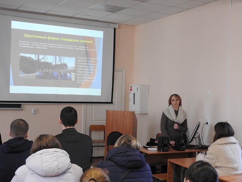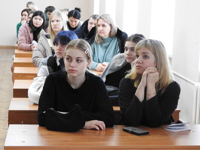 Далее заместитель декана по довузовской работе Елена Дьякова проинформировала гостей о ежегодных мероприятиях для школьников, которые проводит факультет, и пригласила старшеклассников принять участие в Субботней школе РГФ.