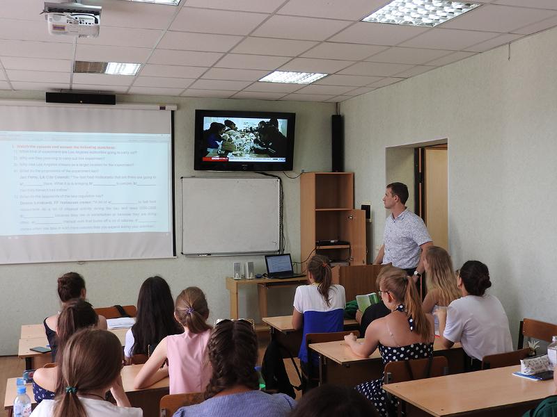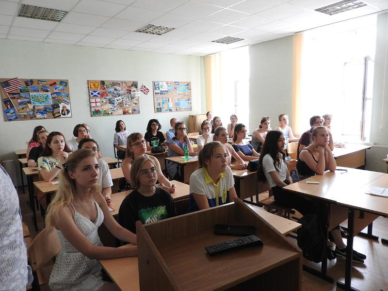 Занятия начались с лекции заведующей кафедрой английской филологии проф. Любови Цуриковой, которая была посвящена проблемам межкультурной коммуникации в современном мире. Далее перед школьниками выступила доцент кафедры французской филологии Елена Викторовна Кашкина, которая рассказала о странах франкофонах. Также слушатели летней школы смогли поучаствовать в мастер-классе по переводу, проведённом доцентом кафедры теории перевода и межкультурной коммуникации Еленой Пивоваровой, и мастер-классе, посвящённом особенностям британских СМИ, который провёл доцент кафедры английской филологии Андрей Быстрых.
