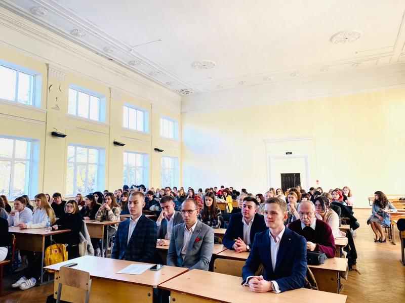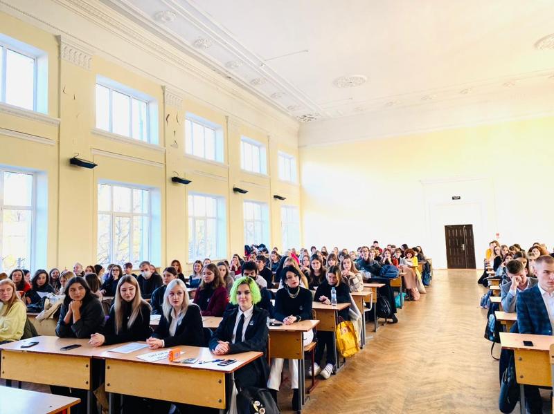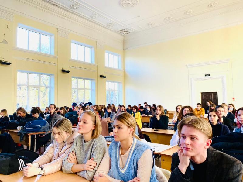 Лариса Кузьмина, заведующая кафедрой перевода и профессиональной коммуникации, кратко ознакомила первокурсников с возможностями участия в различных студенческих переводческих и научных конкурсах, играх и олимпиадах. Праздничный день был ознаменован хорошими новостями: ряд студентов английского отделения стали победителями и призерами международных переводческих конкурсов и кейс баттлов (инновационный формат конкурса, требующий от студентов навыков критического мышления и творческого подхода к условиям заданной проблемной ситуации). С «проблемной ситуацией» столкнулись и первокурсники, успешно пройдя квест на тему истории профессионального праздника.