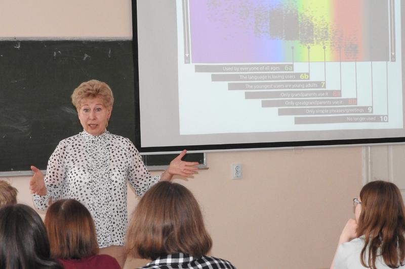 Третий день работы Школы начался с лекции на тему «Зачем людям лингвистика в XXI веке?», которую прочла заведующая кафедрой теоретической и прикладной лингвистики, доктор филологических наук, профессор Ксения Шилихина.