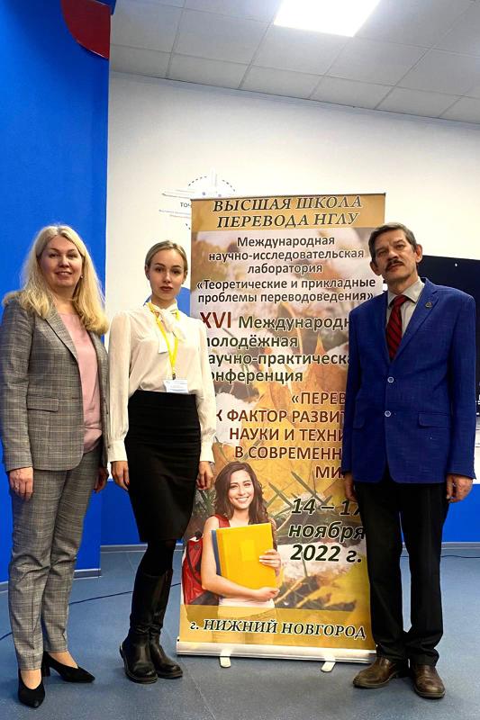 Студенты-переводчики вновь успешно продемонстрировали свой профессиональный потенциал. На этот раз наш «переводческий десант» высадился в Нижнем Новгороде, где состоялась 16-ая Международная молодёжная научно-практическая конференция «Перевод как фактор развития науки и техники в современном мире» (14–17 ноября 2022 г.) при организации и поддержке Высшей школы перевода и Международной научно-исследовательской лаборатории «Теоретические и прикладные проблемы переводоведения» ФГБОУ ВО «Нижегородского государственного лингвистического университета им. Н.А. Добролюбова».