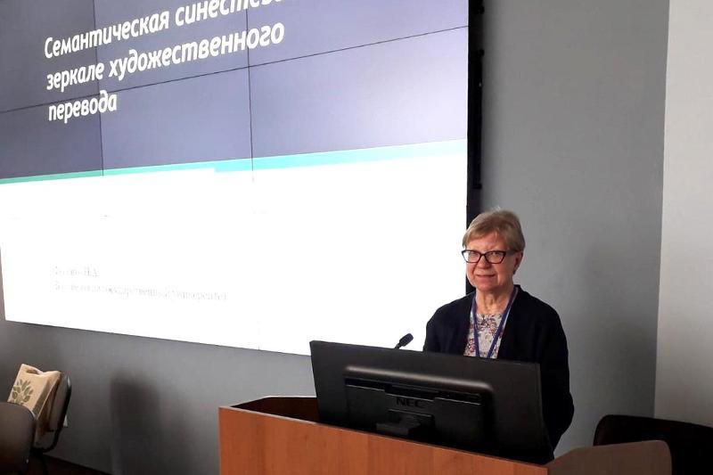 Наталья Фененко выступила на пленарном заседании с докладом «Семантическая синестезия в зеркале художественного перевода», Ольга Донина – на заседании секции с докладом «Межвариантная диалектология английского языка (на материале сопоставления скрытой категоризации)».
