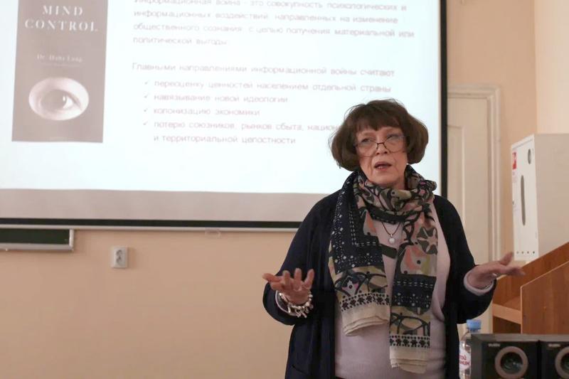 3 апреля на факультете РГФ в рамках работы лектория Студенческого научного объединения «Союз» прошла открытая лекция Любови Васильевны Цуриковой – доктора филологических наук, профессора, заведующей кафедрой английской филологии – на тему «Стратегии информационно-психологического воздействия в условиях информационной войны».