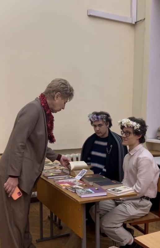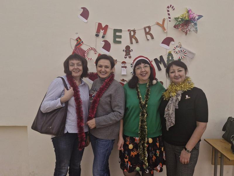 Преподаватели и студенты собрались в ауд. 100, чтобы спеть праздничные песни, потанцевать и принять участие в ставшей уже традиционной благотворительной ярмарке, для которой были подготовлены книги, сладкие угощения и бижутерия ручной работы.