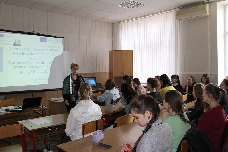 Кафедра французской филологии факультета РГФ Воронежского госуниверситета и Региональный центр франко-российского сотрудничества провели семинар «Информационно-коммуникационные технологии обучения иностранным языкам в контексте процесса интернационализации образования» для студентов ф-та РГФ ВГУ и студентов факультета иностранных языков Воронежского государственного педагогического университета. На семинаре был представлен опыт кафедры французской филологии ВГУ по реализации европейской программы ЭРАСМУС+ (акция Жан Монне) Jean Monnet 564786-EPP-1-2015-1-RU-EPPJMO-MODULE) «Identité européenne à travers la politique de l’Union Européenne» (PolidEU) («Европейская идентичность сквозь призму политики Европейского союза»). Деятельность в рамках проекта предусматривает целый ряд как образовательных, так и внеучебных мероприятий (студенческие и школьные научные конференции, деловые игры-симуляции), которые играют важную роль в формировании профессиональных компетенций современного специалиста в области иностранных языков, повышает его конкурентоспособность на рынке труда, в том числе в образовательном пространстве, и становится важным фактором его развития.