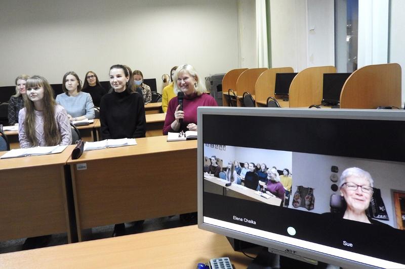 21 октября в компьютерном классе факультета романо-германской филологии состоялась видеоконференция на английском языке с профессором университета Астон (г. Бирмингем, Великобритания), Почетным доктором ВГУ д-ром Сью Гартон (Dr. Sue Garton). Онлайн встреча была организована доцентом кафедры английской филологии Еленой Чайка для студентов 1 курса магистерской программы «Преподавание иностранных языков с использованием онлайн технологий».