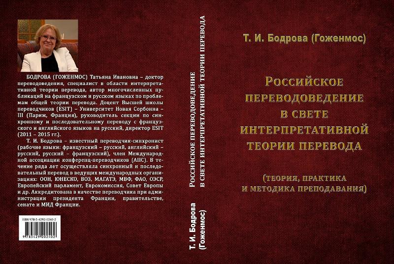 В рамках семинара прошло знаменательное событие – презентация выхода из печати монографии Татьяны Бодровой «Российское переводоведение в свете интерпретативной теории перевода (теория, практика и методика преподавания)» в переводе на русский язык, сделанном профессором кафедры французской филологии Натальей Фененко. Книга Татьяны Бодровой представляет собой уникальное исследование, в котором предпринята попытка детально и последовательно проанализировать концепции ведущих отечественных переводоведов, оценить их вклад в развитие теории перевода, а также восполнить пробел в обоюдных знаниях о переводоведческих исследованиях в России и во Франции. До настоящего времени эта работа остаётся едва ли не единственным зарубежным исследованием, в котором делается попытка осмыслить вклад российской науки в развитие теории и практики перевода, а также сопоставить лингвистическую концепцию перевода, сторонниками которой являются российские ученые, с интерпретативной теорией перевода, разрабатываемой в парижской Высшей школе переводчиков (ESIT). Примечательно, что несколькими годами ранее профессорами кафедры Еленой Алексеевой и Натальей Фененко была переведена монография одной из авторов интерпретативной теории перевода Марианны Ледерер «Актуальные аспекты переводческой деятельности в свете интерпретативной теории перевода».