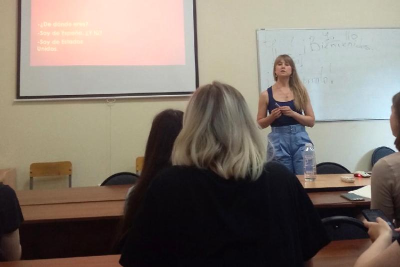Далее школьники смогли познакомиться с языками, которые не изучали в школе в рамках «нулевых уроков» по немецкому и испанскому языкам. На уроке по испанскому языку слушатели даже смогли пообщаться с преподавателем и переводчиком из Мадрида, который подключился к занятию в формате видео-конференции. Также старшеклассники, продолжающие изучение немецкого и французского языков, смогли попрактиковаться в них в рамках занятий для продолжающих. Завершила день лекция на английском языке “Russia and Great Britain. Cultural Connections” доцента кафедры английской филологии, кандидата филологических наук Ярослава Еремеева. Лекция была посвящена культурным связям России и Великобритании.