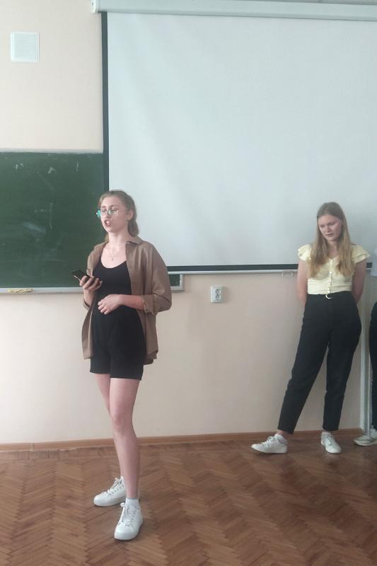Программа пятого и заключительного практическо-лекционного дня работы Школы была не менее насыщена, чем программа предыдущих дней. Мастер-классы по практике перевода были посвящены закадровому переводу, а также развитию навыков аудирования у будущих переводчиков. В рамках практических занятий по английскому языку школьники смогли почувствовать себя настоящими детективами в ходе игры “True Detective Crash Course”, а также узнать много нового о сне и сновидениях в рамках урока “What you didn’t Know about Sleep”. Лекционная часть этого дня была представлена двумя лекциями: «Язык как инструмент установления взаимопонимания и взаимодействия», которую прочла заведующая кафедрой французской филологии, доктор филологических наук, профессор Елена Алексеева, и «Языки мира», которую прочла декан факультета романо-германской филологии доктор филологических наук Ольга Борискина. После заключительной лекции школьники задали декану факультета много вопросов об особенностях учёбы на факультете, преподаваемых программах бакалавриата и специалитета, изучаемых на факультете языках, а также перспективах трудоустройства в новых меняющихся условиях.