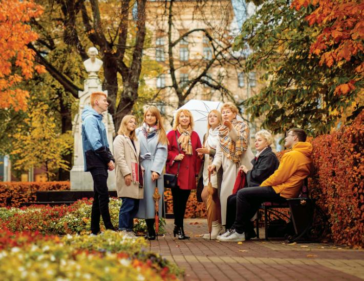 На обложке номера – осенний Кольцовский сквер, в котором прогуливаются студенты и преподаватели факультета романо-германской филологии.