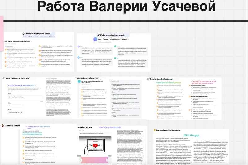В рамках нового модуля студенты освоили навыки написания запросов (промптов), которые студенты задавали нейросети для разработки как целых учебных курсов, так и отдельных сценариев, создания текстовых материалов для преподавания иностранных языков (статей, рассказов, историй, материалов для кейсового метода, диалогов на заданную тему и т.д.), различных видов тестов, квизов, разработки учебных игр, мастермайндов и т.д. Также ребята научились создавать аудиоконтент, обучающие видео, нейроиллюстрации для оформления учебных материалов и наглядных пособий.