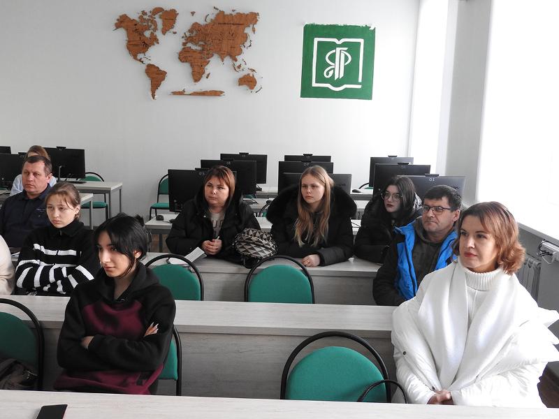 Далее заместитель декана по довузовской работе Елена Дьякова проинформировала гостей о ежегодных мероприятиях для школьников, которые проводит факультет, и пригласила старшеклассников принять участие в Субботней школе РГФ.