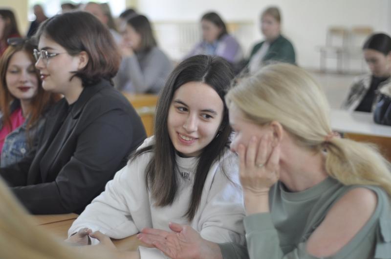 На общем собрании перед абитуриентами и их родителями с приветственным словом выступила декан факультета РГФ Ольга Борискина. Она рассказала школьникам и их родителям о направлениях и формах обучения на факультете романо-германской филологии, а также ответила на вопросы аудитории.