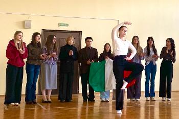 В рамках неофициальной части праздника доцент кафедры перевода и профессиональной коммуникации, Дмитрий Олегович Курилов, представил соннеты У. Шекспира в авторской музыкальной обработке и в авторском переводе. А первокурсники с удовольствием продемонстрировали свой творческий азарт в формате сценических скетчей и исполнения песенных и танцевальных композиций.