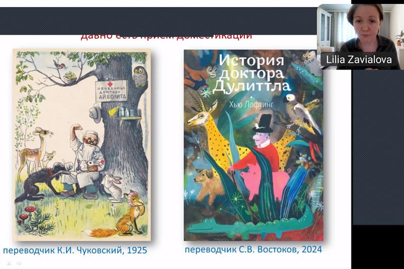 Лектор познакомила слушателей с тем, как на факультете осуществляется профессиональная подготовка будущих лингвистов специалистов по межкультурной коммуникации. Студентов учат обращать внимание на культурноспеципфичные детали, наращивать свой багаж фоновых знаний, расширять свой кругозор. На примере известных детских книг Лилия Алексеевна рассказала о том, как переводчики, а по сути авторы новых текстов, осуществляли доместикацию и лингвокультурную адаптацию переводимых произведений.