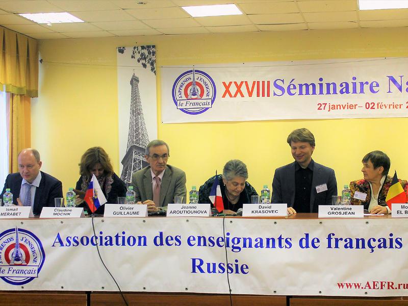 На открытии семинара приветственную речь произнес г-н Оливье Гийом, советник по культуре и сотрудничеству Посольства Франции, и Клодин Мокник, атташе по сотрудничеству в области французского языка, которая подробно рассказала в ходе конференции о деятельности Французского Института в России и о совместных проектах.
