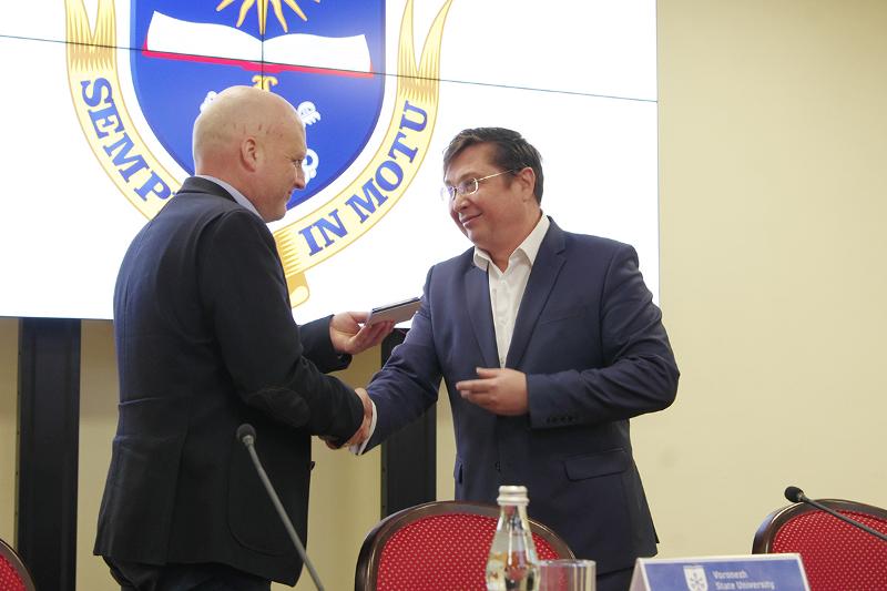 Второй день конференции был не менее насыщенным. 20 февраля в конференц-зале главного корпуса ВГУ прошла торжественная церемония вручения ректором ВГУ проф. Д.А. Ендовицким Почётного знака «За заслуги перед ВГУ» профессору д-ру Томасу Райту.