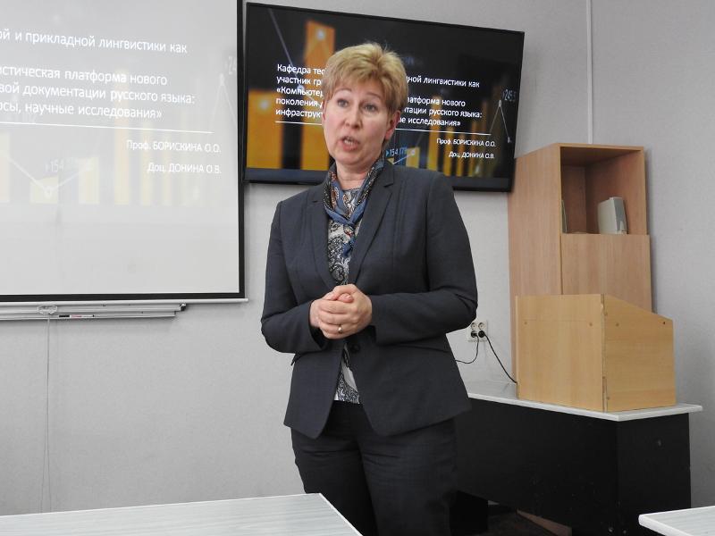 Пленарное заседание было посвящено 20-летию кафедры теоретической и прикладной лингвистики (ТиПЛ), где доктора наук этой кафедры представили многообразный спектр вопросов, над которыми сейчас ведется работа. Открыл пленарное заседание основатель кафедры ТиПЛ Алексей Кретов темой «Параметрический анализ лексики санскрита». Далее выступила заведующая кафедрой Ксения Шилихина, рассказав о синестетических метафорах в гастрономическом дискурсе. Инна Меркулова выступила с докладом «Изофраза "пресная вода" на лингвистической карте Европы». Игорь Половинкин рассказал о некоторых математических моделях в языкознании. И завершил пленарное заседание доклад Ольги Борискиной и Ольги Дониной о настоящем и будущем кафедры – о ее участии в проекте «Компьютерно-лингвистическая платформа нового поколения для цифровой документации русского языка: инфраструктура, ресурсы, научные исследования».