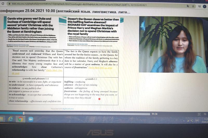 25 апреля состоялась XXXV конференция Научного общества учащихся (НОУ) ВГУ. В работе секции факультета романо-германской филологии «Иностранные языки и культуры» приняло участие 185 школьников из г. Воронежа и Воронежской области. Конференция проходила в режиме онлайн.