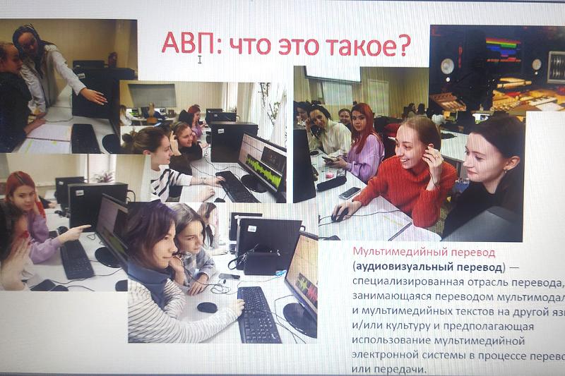 Лекция «Перевод: ремесло или искусство?» была посвящена переводческому направлению деятельности факультета романо-германской филологии. В ней доцент кафедры перевода и профессиональной коммуникации, кандидат филологических наук, член союза переводчиков России Светлана Лукина рассказала школьникам о том, как проходит обучение бедующих переводчиков на факультете, о специальной учебной литературе, об оснащённости факультета самым современным переводческим оборудованием (лингафонный кабинет, кабинки для синхронного перевода), о мастерах-наставниках, ведущих специалистах отрасли, которые преподают различные виды перевода студентам РГФ. В частности, ребята узнали о таком специфическом и очень востребованном сейчас виде перевода, как аудио-визуальный перевод. В качестве примера, Светлана Леонидовна рассказала о том, как в рамках спецкурса по АВП студенты смогли не только перевести, но и поучаствовать в озвучке документального фильма о Воронеже в профессиональной студии звукозаписи. Далее лектор рассказала о том, как студенты-переводчики оттачивают свои навыки на практике в ведущих переводческих агентствах и на конкурсах переводческого мастерства. Подводя итог своей лекции и возвращаясь к вопросу, заявленному в качестве темы лекции, Светлана Леонидовна констатировала, что профессия переводчика – это одновременно и ремесло и искусство.