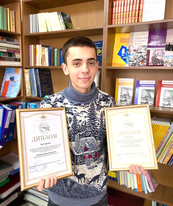 В составе университетской команды принимал участие студент-переводчик Денис Откидач (3 курс). Его успешное участие отмечено двумя дипломами – дипломом за III место в первом туре и дипломом за III место в третьем туре личного первенства команд с профильной подготовкой. Для Дениса – это первое участие в подобном мероприятии. От всей души поздравляем его с хорошим стартом и желаем ему дальнейших побед!