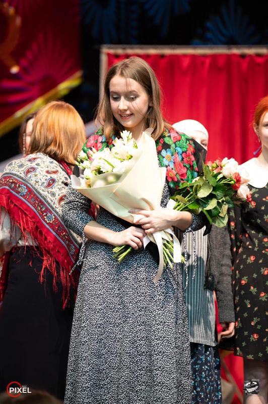 А теперь о победах! Хотим поздравить с получением спецприза тех, кто работал над номером оригинального жанра, академического вокала, стэмом. Победили в номинациях тизер и афиша к нашему концерту. А также Надежда Юдина и Елизавета Корчагина были номинированы на лучшую женскую роль. Лучшая женская роль была присуждена Наде Юдиной, с чем мы её и поздравляем.