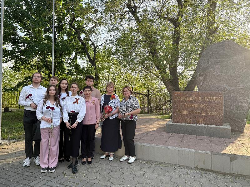 В завершении мероприятия состоялось возложение цветов к памятному знаку студентам и сотрудникам Воронежского государственного университета, погибшим в годы Великой Отечественной войны.