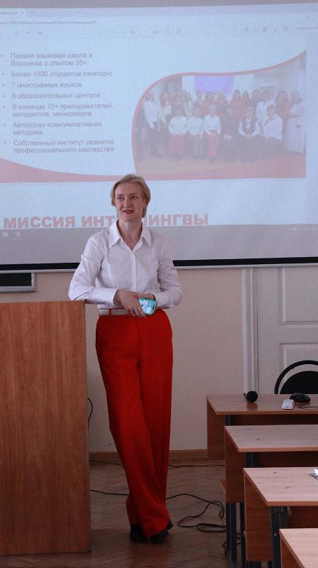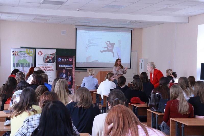 На презентации школ присутствовали студенты старших курсов, бакалавры и магистры, заинтересованные в получении информации об этом сегменте рынка труда города Воронежа и опыта работы преподавателем иностранного языка.
