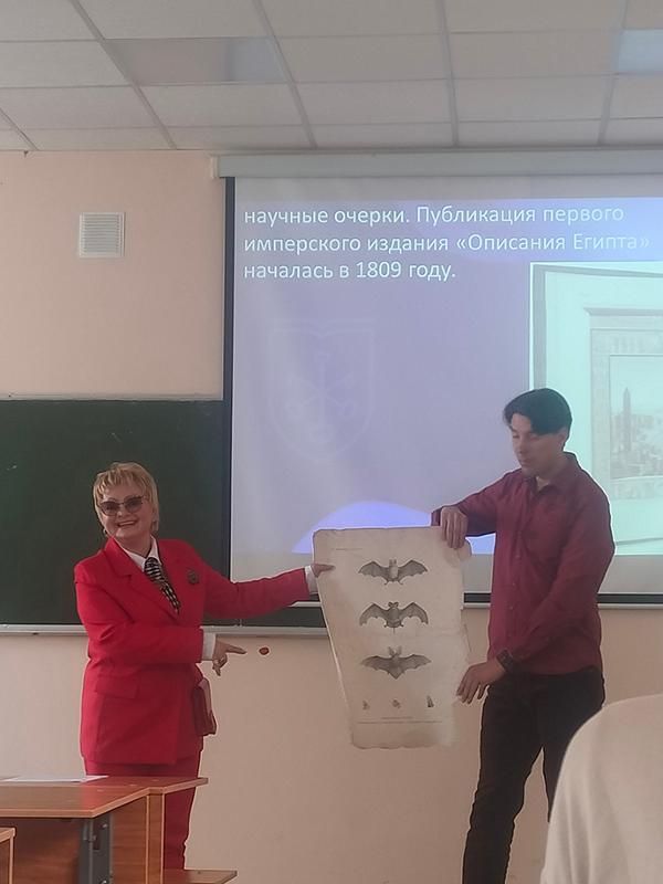 Большой интерес участников конференции вызвала презентация старинной книги «Description de l'Egypte» («Описание Египта»), представленной автором проекта Макаровой Анжеликой Валерьевной, руководителем Музейно-выставочного центра ВГУ.