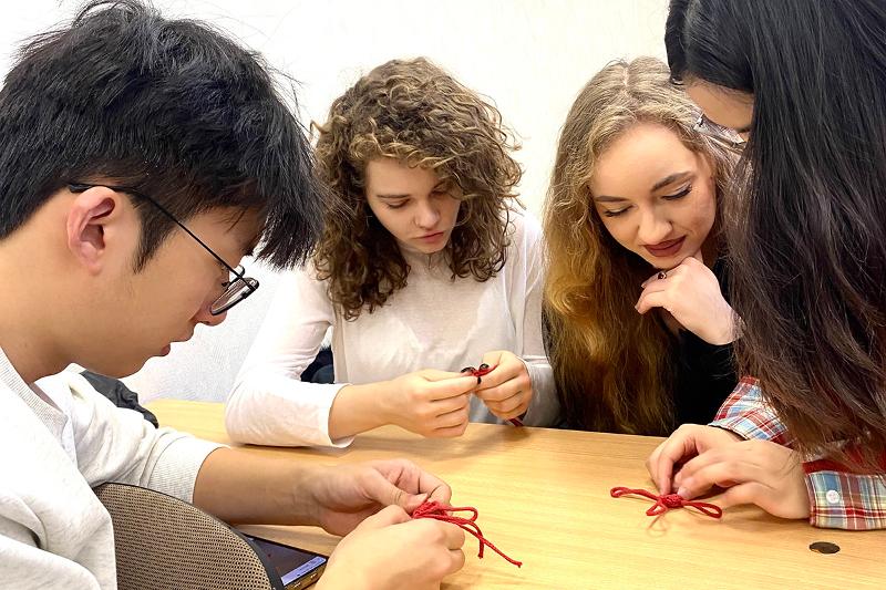 Именно на такой волне прошел «двусторонний» мастер-класс, объединивший студентов-стажеров из Китая и студентов-переводчиков факультета РГФ. Наши китайские друзья представили яркую и интересную презентацию о значении и видах китайских декоративных узелков (Chinese Knots), символизирующих удачу, благополучие и гармонию. А чтобы полнее прочувствовать атмосферу традиционной китайской культуры, китайские студенты на практике научили наших ребят вязать такие узелки. Замысловатые узлы без начала и конца символизируют вечность, бесконечную любовь, удачу и благополучие. Студентам перед сессией это особенно пригодится!